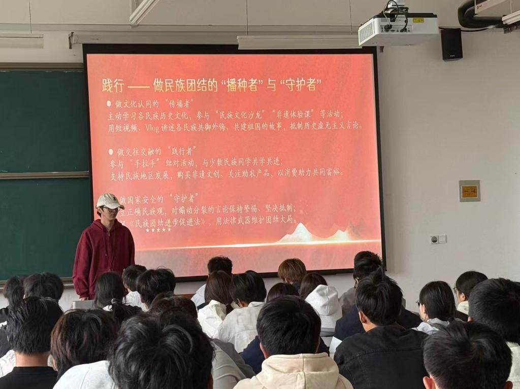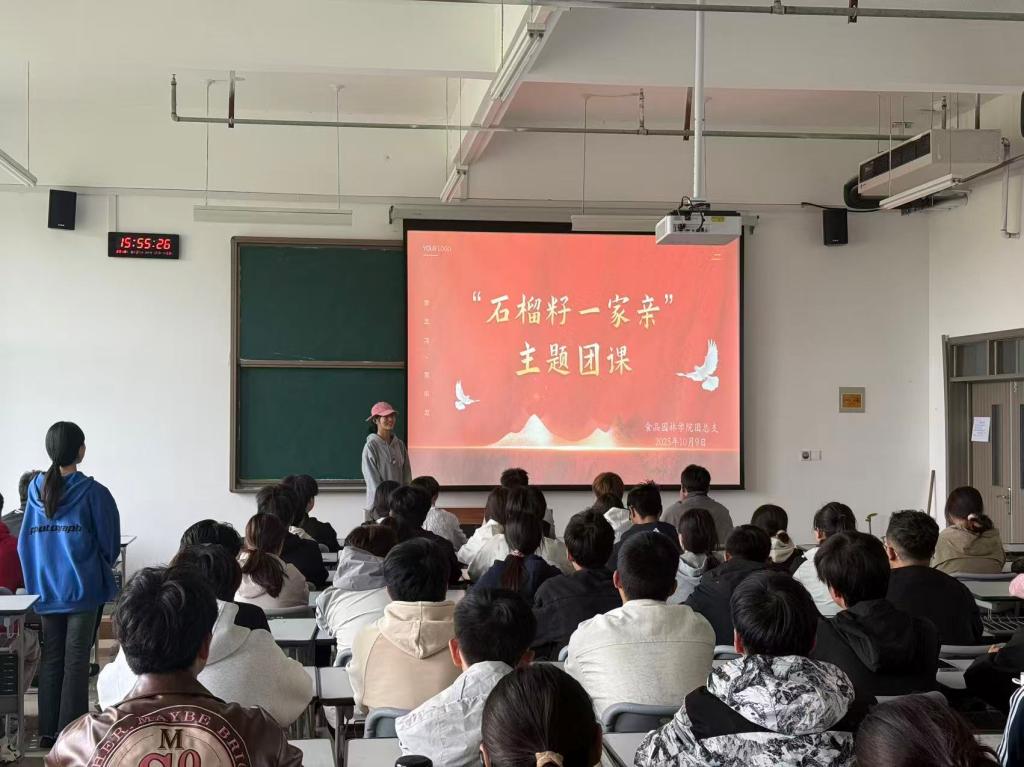 为深入学习贯彻习近平总书记关于加强和改进民族工作的重要思想,切实将铸牢中华民族共同体意识融入青年思想引领全过程,激发广大团员青年维护民族团结、促进共同发展的责任感和使命感,10月9日,食品园林学院团总支组织开展“石榴籽一家亲”主题团课。学院全体团员齐聚一堂,在学习中凝聚共识,在交流中汇聚合力,共同传递民族团结的青春正能量。