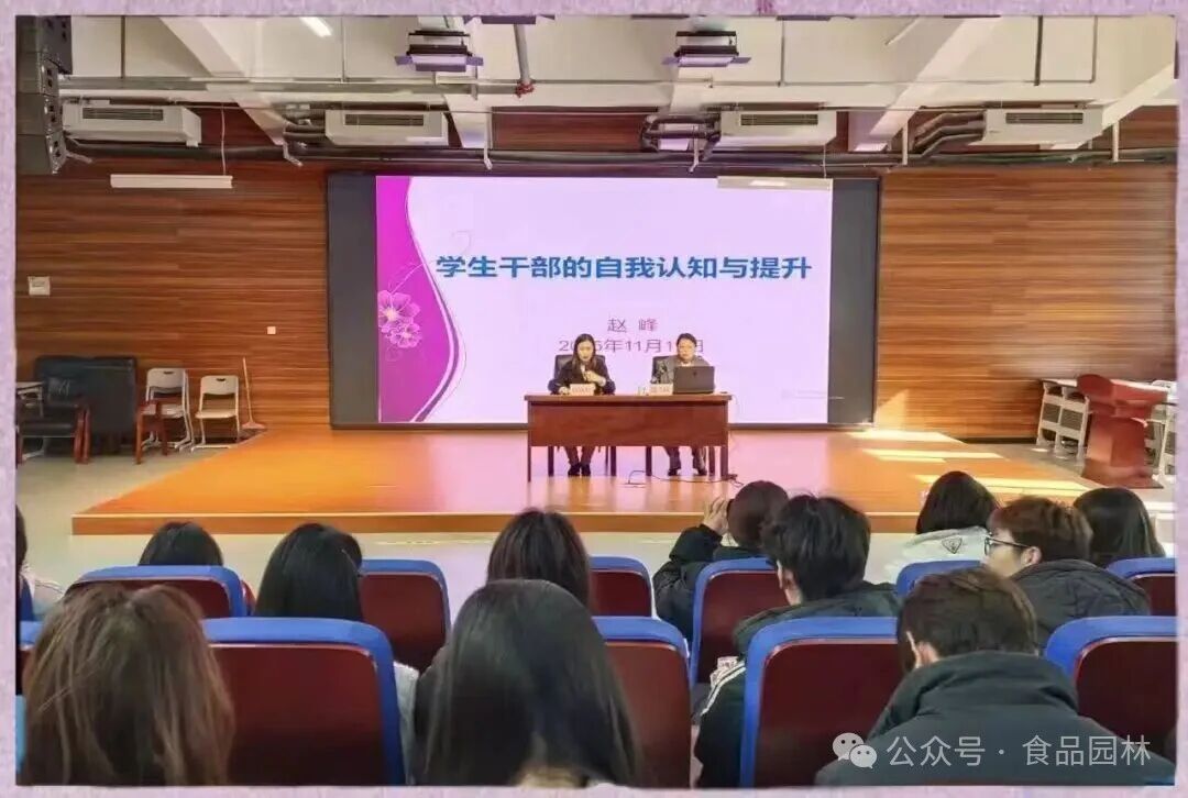 为全面加强学生干部队伍建设,为学生骨干“充电赋能”,锻造一支能担9当、善作为的先锋力量,11月19日,食品园林学院成功举办“强基实干”学生干部专题培训。本次培训特邀学生处副处长赵峰担任主讲,学院各级学生骨干及班级主要班委共同参加。讲座由学院党总支副书记高晓松主持。