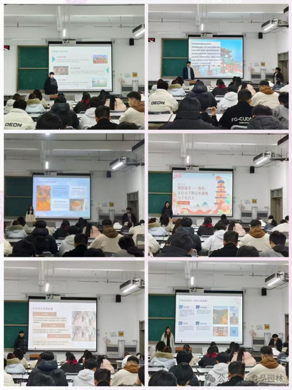 活动中,同学们化身“家乡代言人”,通过图文并茂的演示与深情讲述,带领在场师生展开一场沉浸式的“云端”文化之旅。濮阳学子展示“中华第一龙”的历史厚重与麦秸画非遗技艺,并带来凉皮、糟鱼等舌尖记忆;驻马店同学则以嵖岈山的雄奇、梁祝传说的凄美为主线,辅以芝麻香油、十三香等地方风物,尽显“天下之中”的韵味;来自商丘的讲述者将殷商古城的文明轨迹与火神台的历史烟火娓娓道来,薛湖水煎包的酥脆、水激馍的香甜,更添一份人间烟火气。一方水土一方情,中原大地的深沉底蕴与生活气息,在话语间交织成共同的乡愁与文化认同。